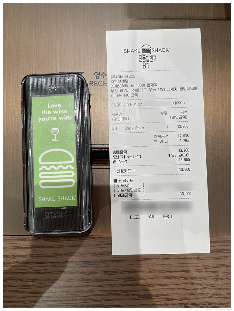 | [부산광역시 해운대구] 쉐이크쉑(SHAKE SHACK) 쉑버거, 치킨 쉑(신세계 쇼핑몰 센텀시티점), 은하수산 포장초밥(신세계 백화점 센텀시티점) (0) | 2023.06.18 |