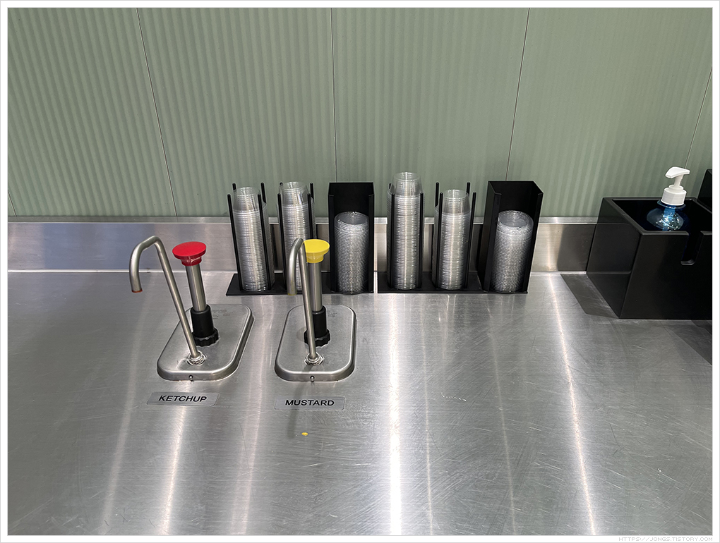 ▼ 매장내에서 케첩과 머스타드 소스를 담아갈 수 있는 곳으로 깔끔하네요.