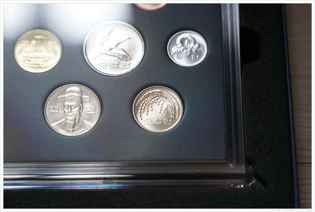 ▼ 작은 동전은 깨끗한 듯 보이고 오백원은 크기가 커서 그런지 자잘한 흠이 보이네요.