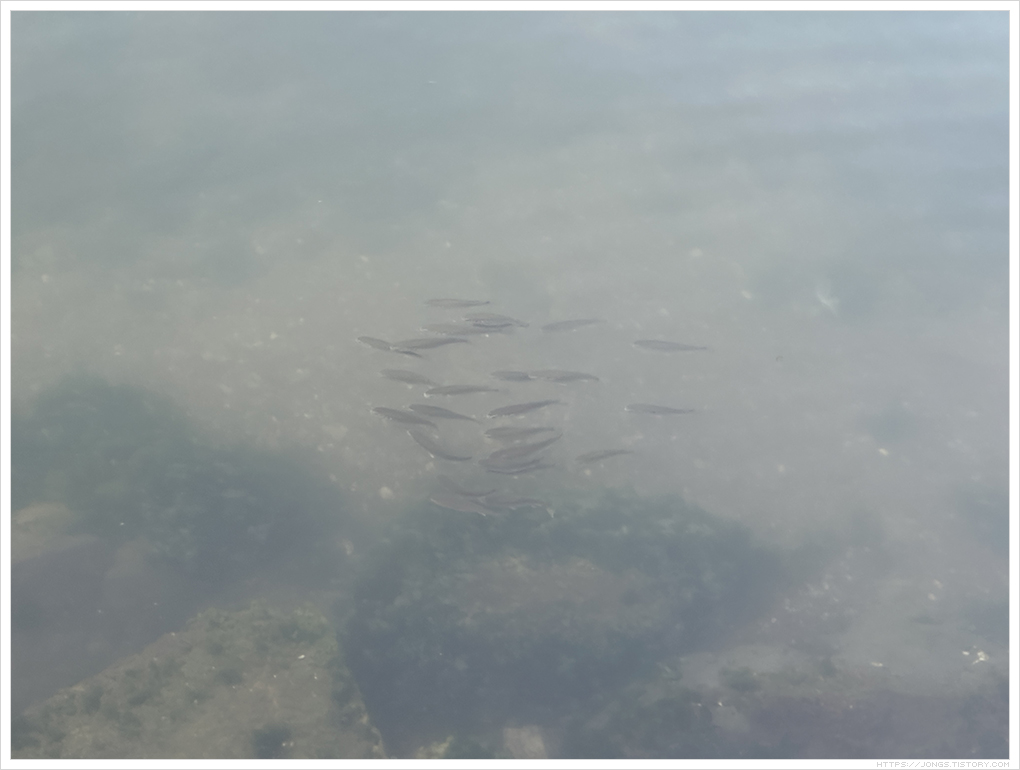 ▼ 고등어 새끼인지 물고기떼가 다니는 것이 보였습니다.