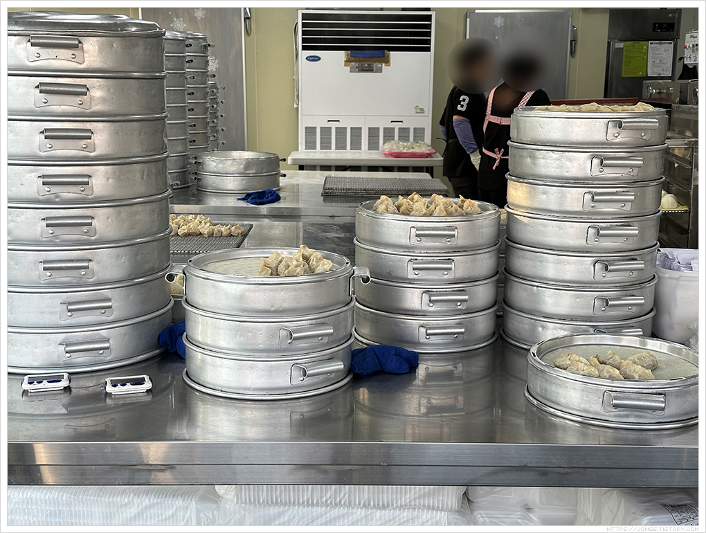 ▼ 찐빵을 구매를 합니다. 내부에는 만두도 보이네요. 고기만두, 김치만두입니다. 찐빵처럼 큰 왕만두도 있어요.