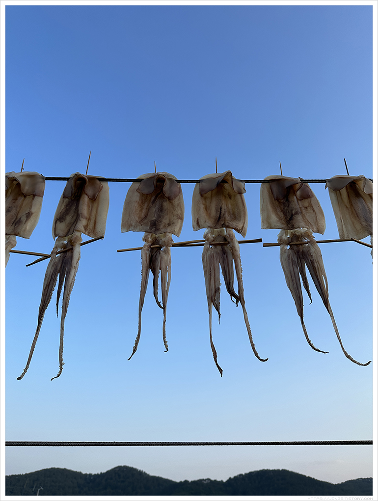 ▼ 오징어를 말리는 곳 뒤편으로 달이 떴습니다.