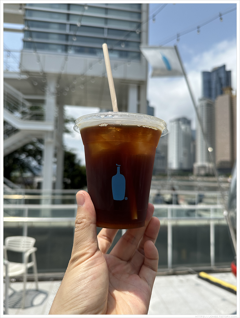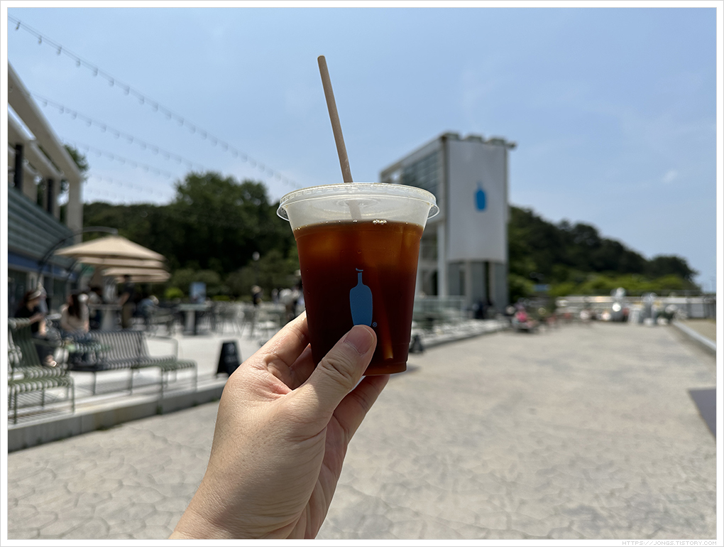 ▼ 햇볕을 가려줄만한 테이블에 있는 파라솔이 몇개 밖에 펴져 있지 않아서 그늘이 없어 아쉬웠어요. 그리고 여유롭게 있지는 못했지만 향과 맛이 좋은 시원한 커피한잔 하니 이만큼 행복한 시간이 없는 것 같습니다.