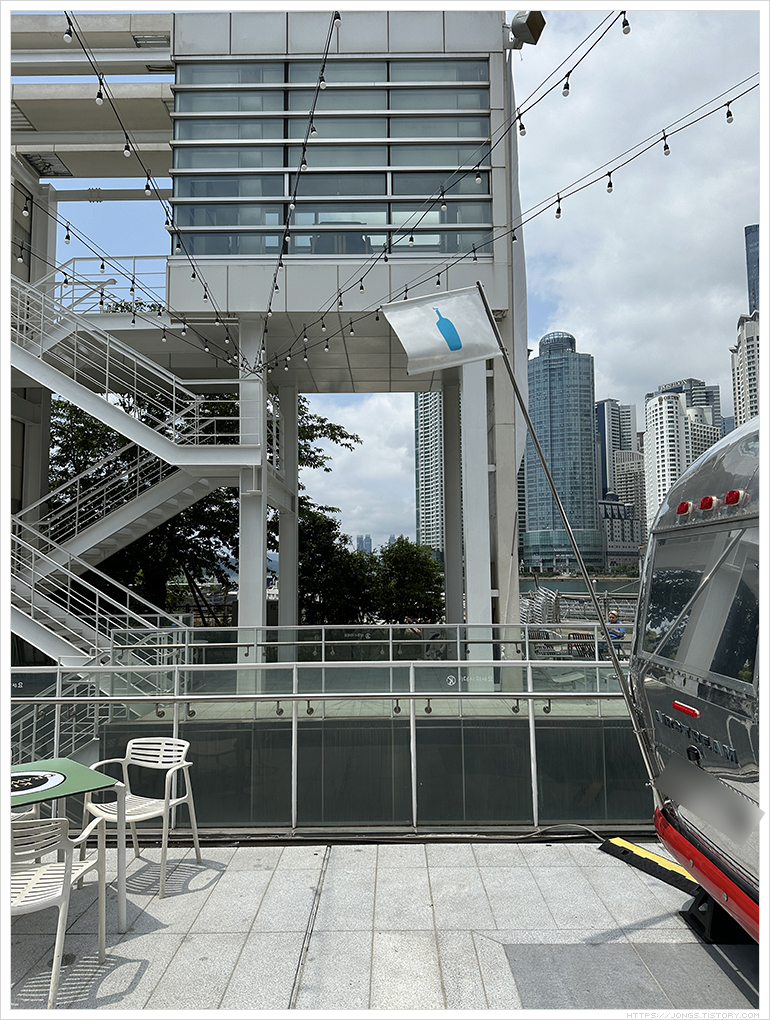 ▼ 해운대 동백섬 더베이101 광장에 있는 블루보틀 커피트럭 모습입니다. 그 뒤쪽으로는 동백공원 공영주차장이 있는데 블루보틀에서 메뉴를 주문하면 주차 등록도 해 줍니다. 주차비 지원이 변경되어 2023년 7월 23일 현재는 지원되지 않으니 참고하시기 바랍니다. 더베이101 이용 고객만 주차비 지원이 되고 블루보틀 이용하는 고객은 주차비 지원이 되지 않습니다.