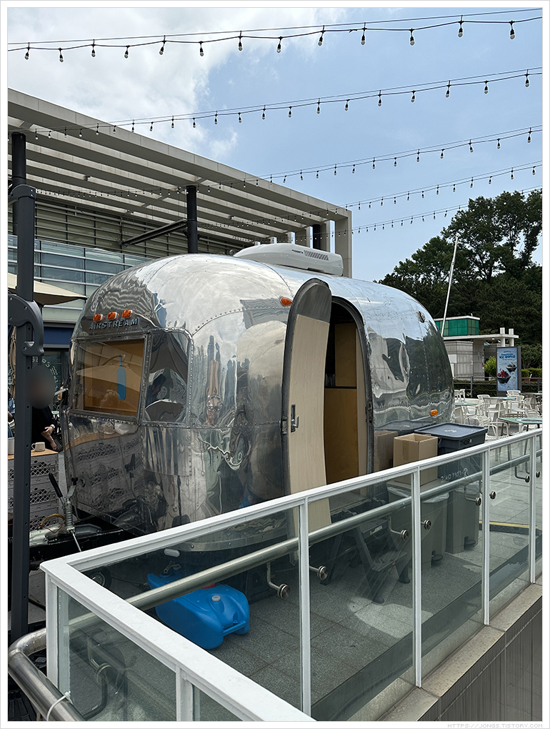 ▼ 커피트럭 뒤쪽에 달려있는 불루보틀 깃발입니다. 조명도 있고 밤에 와도 분위기 있을 것 같아요.