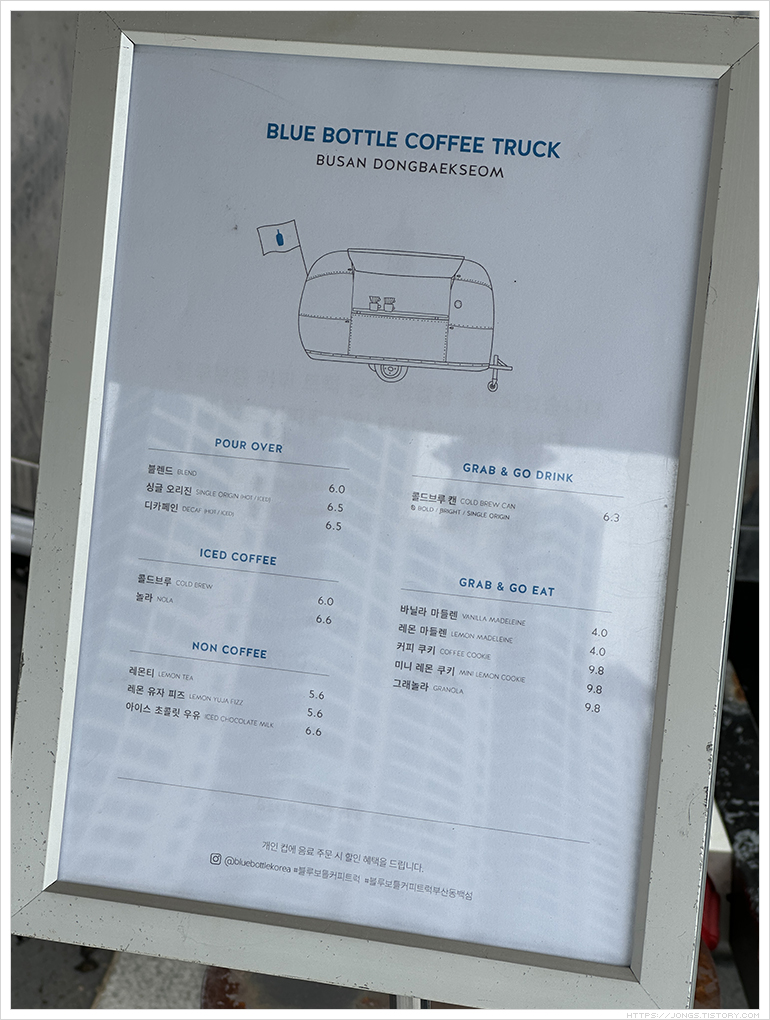 ▼ 귀여운 블루보틀 커피트럭 메뉴판입니다. 블루보틀 모든 메뉴가 다 있는 것은 아니지만 나름 커피트럭에서 가능한 것으로 구성을 해 놓았습니다.