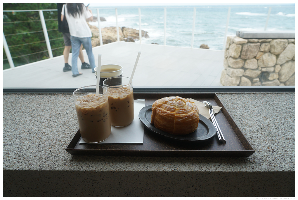 바다를 보고 싶을 때 자주 가는 곳이 기장 커피로쏘입니다. 커피로쏘 바로 뒤쪽 조금 위 언덕에 새로운 카페가 생겼긴 하지만 여전히 커피로쏘에서 음료 한잔을 하며 행복한 시간을 보내고 있습