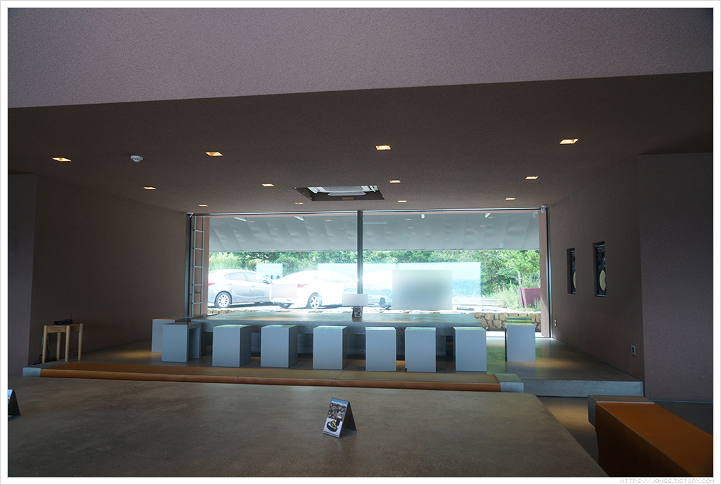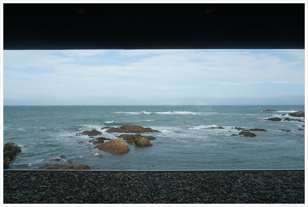 ▼ 카페의 중앙부이고 주차장쪽 대형창입니다. 주차장에서 카페로 올 때 이 창을 통해 바다를 먼저 보게 됩니다.