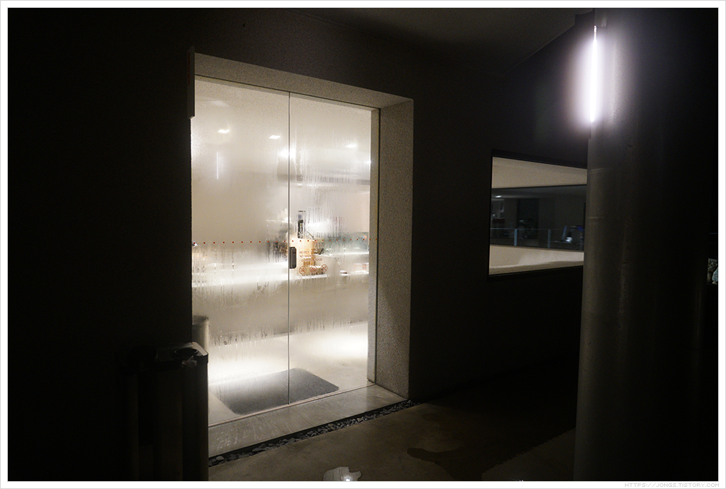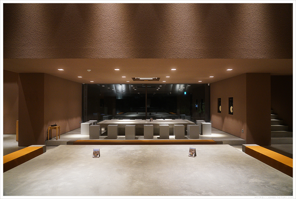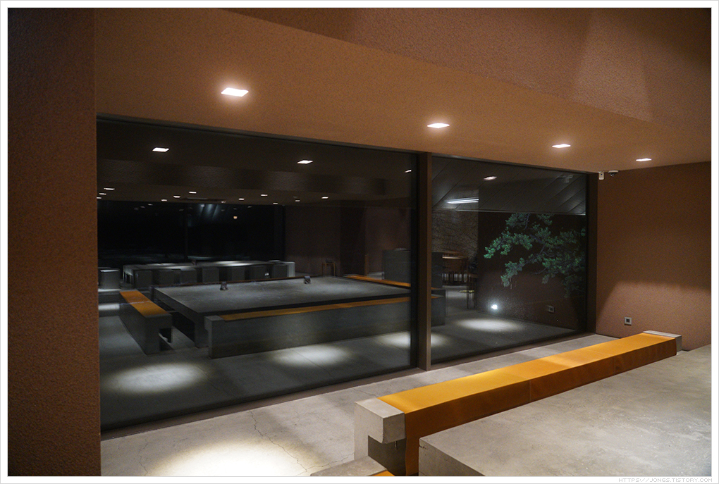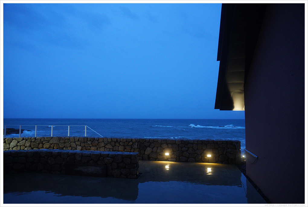 ▼ 바닷가 방향입니다. 해가 져서 밖이 보이지 않지만 외부에도 조명이 있어 가운데 길쭉한 의자에 앉아서 보면 저녁이라도 꽤 잘 보입니다.