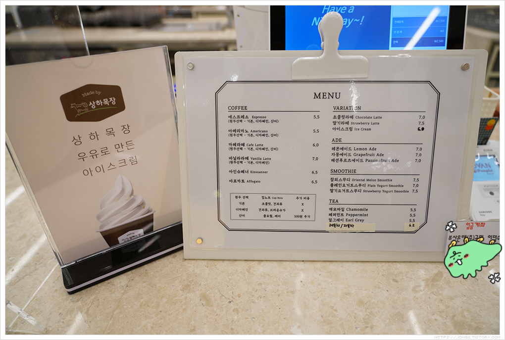 ▼ 음료 메뉴입니다. 상하목장 아이스크림도 있네요.