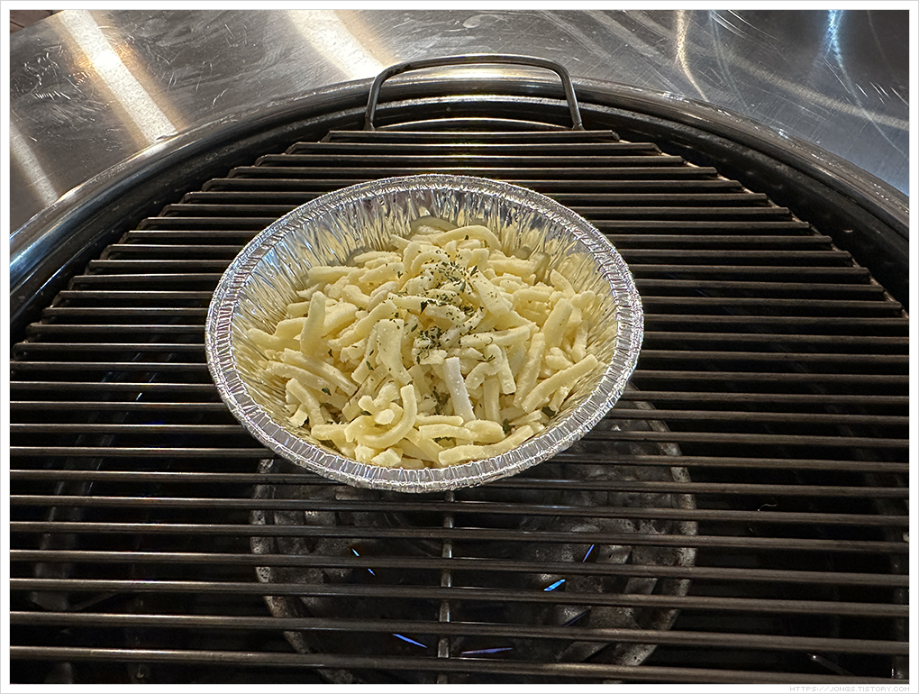 ▼ 두 번째 방문했을 때 콘치즈(5,000원)가 궁금해서 주문해 보았습니다. 아래쪽에 옥수수콘이 깔려 있고 위쪽은 모짜렐라 치즈가 가득해 녹여서 먹는 메뉴입니다. 곰장어랑 같이 먹어도 괜찮을 것 같아요. 치즈그라탕도 있는데 조개구이를 치즈에 찍어 먹을 수 있도록 조개구이 치즈퐁듀 같은 것으로 생각하면 됩니다.