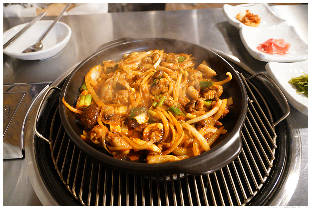 ▼ 곰장어가 정말 부드럽고 양도 많았으며 양념이 정말 맛 있습니다. 곰장어 맛집이네요. 매운 것을 잘 못 먹는데도 계속 젓가락이 갑니다. 앞에서도 이야기 했지만 시원한 콩나물냉국이 매운 맛을 확~ 잡아주는데 효과가 매우 좋습니다. 국물도 시원하고요. 여기에 추가해 환타를 쭉 마셔주면 세상 부러울 것이 없네요. 곰장어가 통통한 느낌인데 씹는 맛이 있고 부드럽습니다. 음식이 맛있네요.