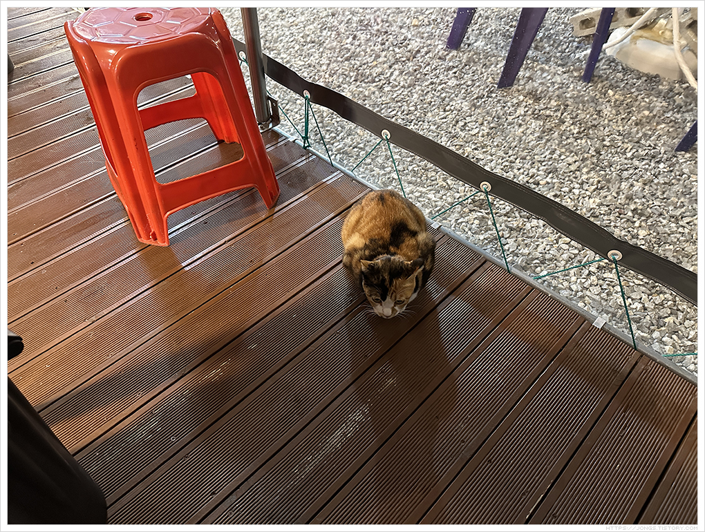 ▼ 맛이 좋아서 한 2번 더 방문했습니다. 두번째 갔을 때는 냐옹이가 슥 들어오는데 한두번 해 본 솜씨가 아니더군요. 옆 테이블에 아주머니께서 이 고양이가 여기서 엄청 유명하다고 이야기 합니다. 배가 고파서 주변을 서성거리 것 같아 소세지나 고양이 먹는 캔을 옆 이마트 편의접에서 사서 줄려고 하니 밥을 주시는 분이 따로 있고 맛 있는 것을 먹는다고 하시면서 고양이 먹는 캔은 입에 대지도 않는다고 하시네요. 옆 테이블 아저씨가 오라고 해서 이것 저것 줘 보시는데 냄새만 맡고 와서 식빵을 굽고 있습니다. 여하튼 엄청 맛 있는거 잘 먹고 다닌다고 합니다.