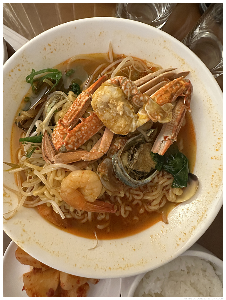 ▼ 라면 맛 있네요. 해물도 풍성하게 들어가 있고 라면 국물에 밥 말아 먹고 싶었는데 참았습니다. 라면 먹고, 해물 먹고, 라면 국물과 밥 먹고 콜라로 매운 맛을 싹 없애주니 정말 좋았습니다.