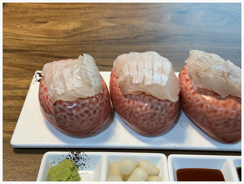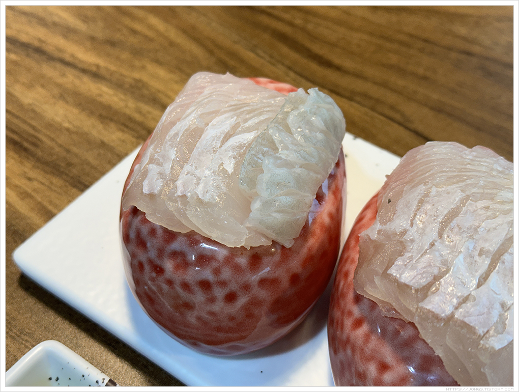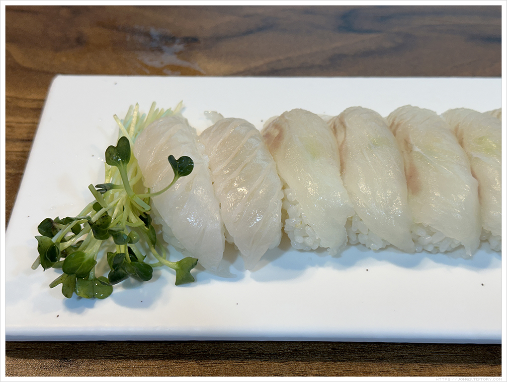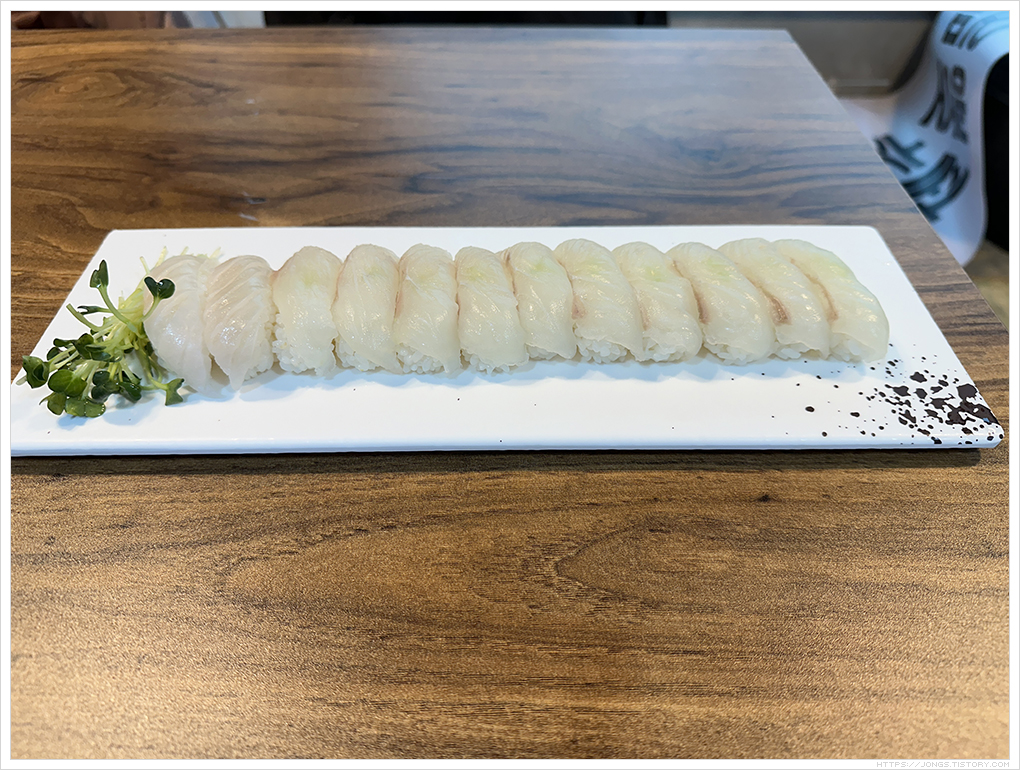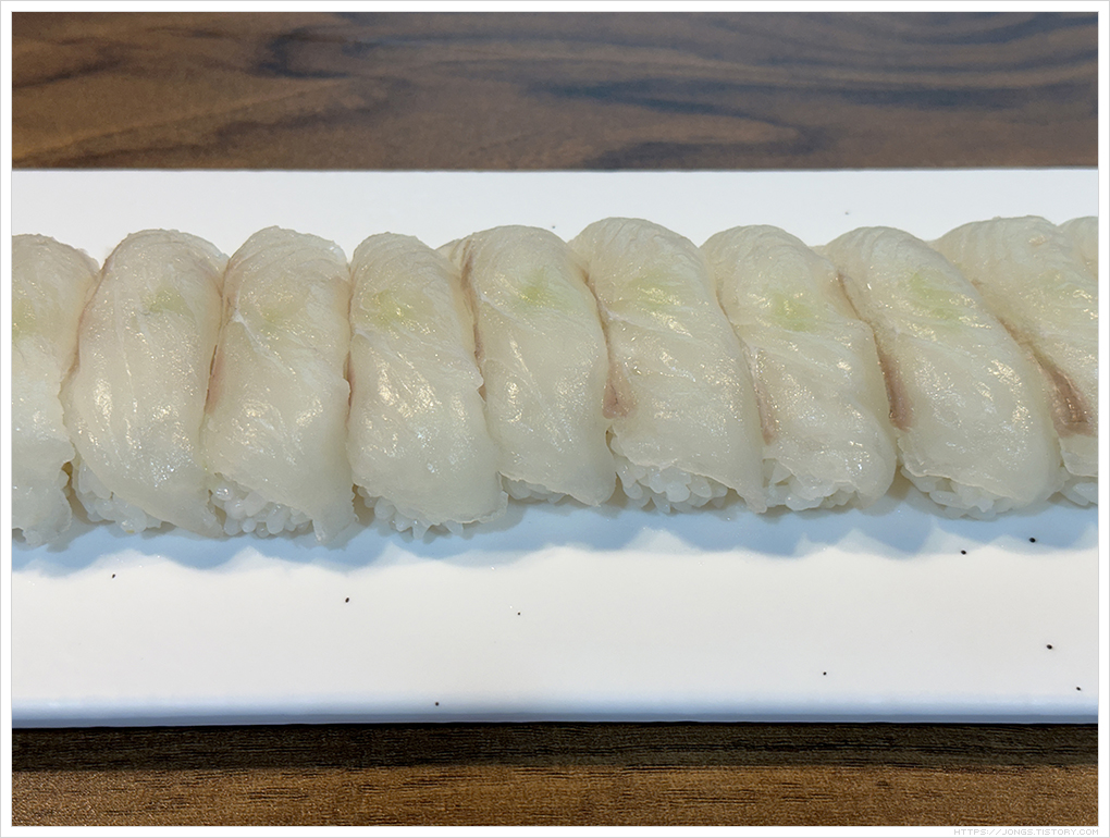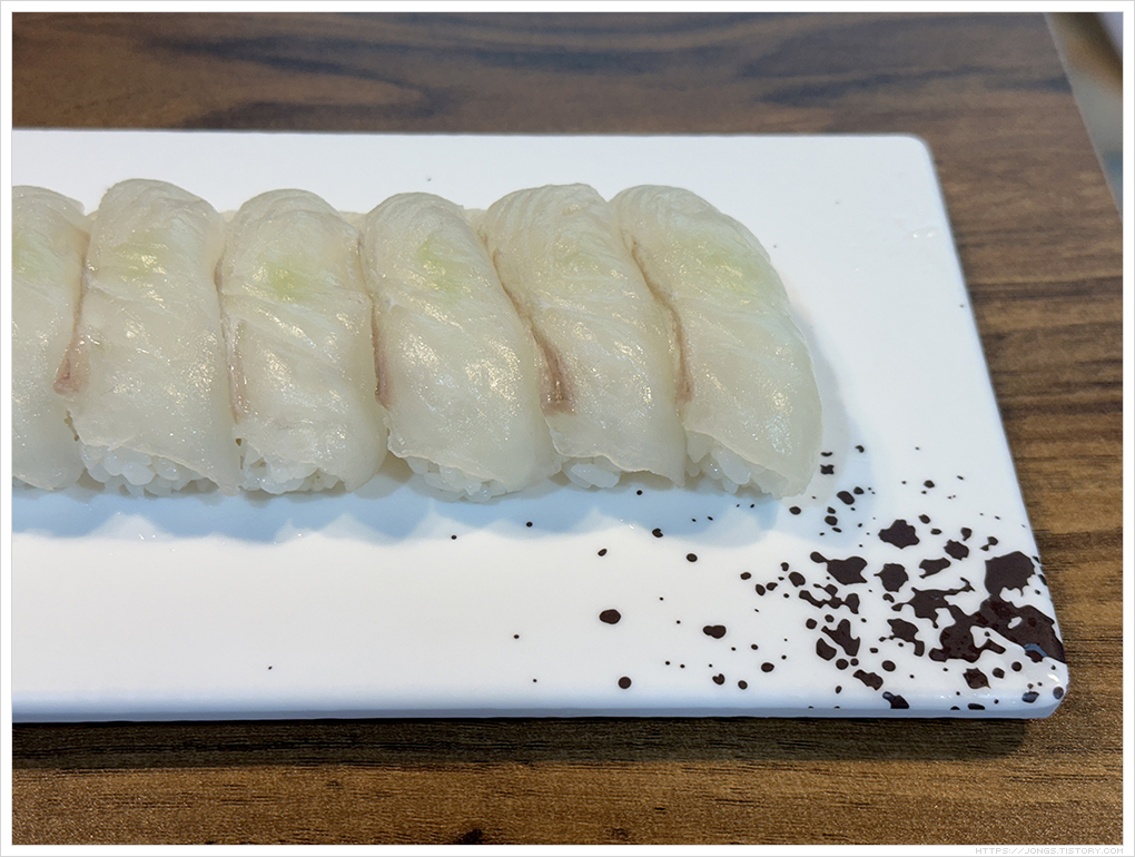 ▼ 광어초밥의 밥은 따뜻한 온기가 있습니다. 날씨가 쌀쌀해서 먹기 좋았습니다.