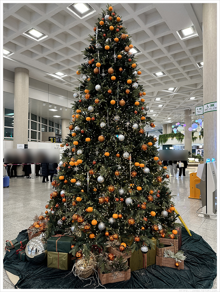 ▼ 크리스마스는 지났지만 트리가 아직 있었는데 제주도 답게 감귤들이 주렁주렁 열려 있습니다.