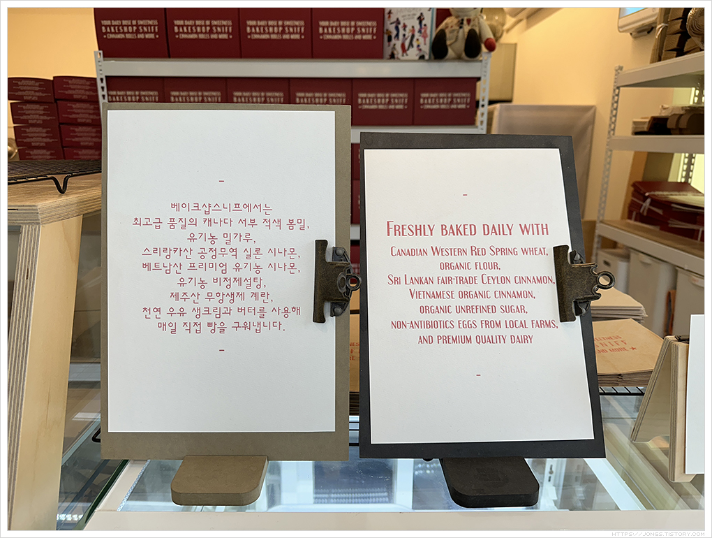 ▼ 베이크샵스니프에서 사용하는 재료들에 대해 안내를 해 놓았습니다. 일반적인 재료가 아닌 자연친화적이고 좋은 재료들로 빵을 만들고 있는 것 같고 제품을 만들어내는 주인장의 가치관을 옅볼 수 있었습니다.