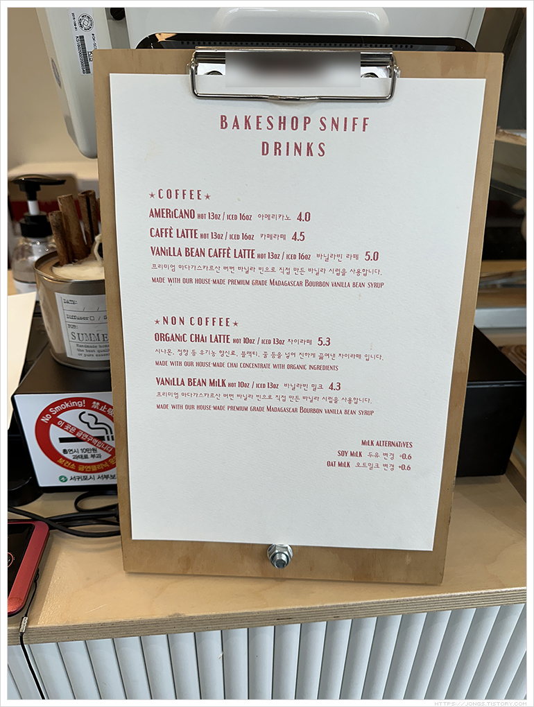 ▼ 음료도 판매하고 있었습니다. 시간적 여유가 있었으면 음료도 함께 주문해 마셔보고 했을텐데 일정이 바쁘다보니 빵류만 포장해서 왔습니다.