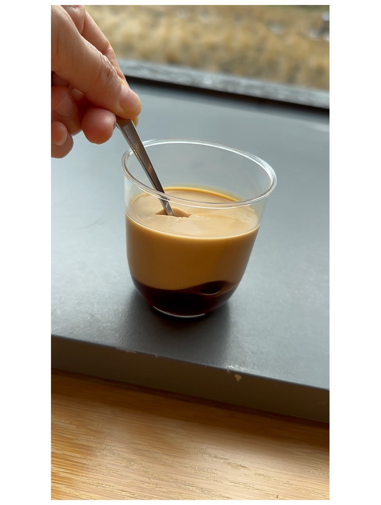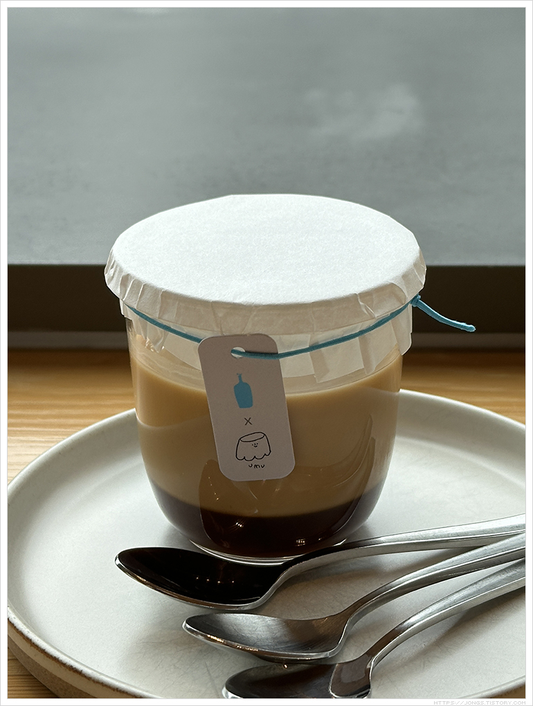 ▼ 음료외 메뉴들도 판매하고 있었는데 이전에 먹은 우무 푸딩이 생각이 나서 우무 커피 푸딩을 음료와 함께 주문했습니다. 블루보틀과 우무과 협업을 하고 있어 우무 푸딩을 제주 블루보틀에서도 구매할 수 있습니다.