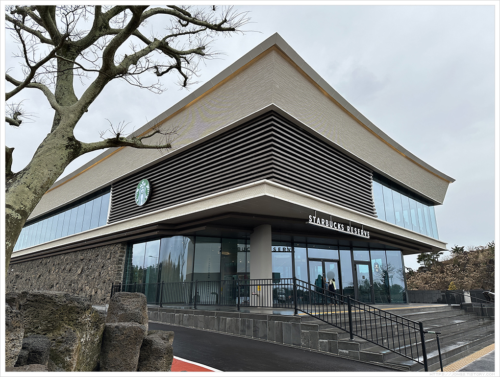 먹돌에서 아침을 먹고 후식을 먹을만한 카페를 찾아 봤는데 동쪽송당 동화마을에 있는 스타벅스 더제주 송당파크R점이 생각 났습니다. 비가 와서 사람들이 많이 가지 않을 것으로 예상했고 깨끗하고 넓은 공간에서 조용히 커피한잔 할 수 있을 것이라 생각했죠. 더제주 송당파크R점은 우리나라 최대 스타벅스 매장입니다.
