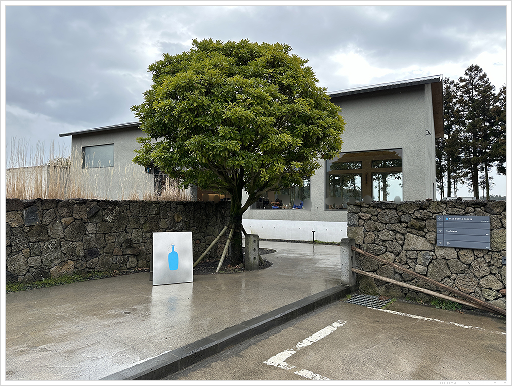 ▼ 고민을 하다 스타벅스 인근에 있는 블루보틀로 옮겼습니다. 블루보틀 주차장에 주차를 하고 입구쪽으로 가니 블루보틀 로고와 나무가 반겨 줍니다.