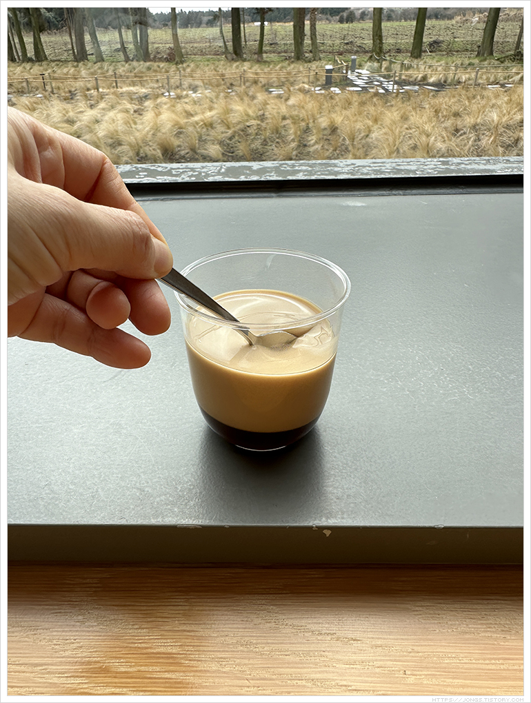 ▼ 우무 커피 푸딩은 미끈거리는 느낌이 많이 올라오는 것 같아 개인적으로는 조금 입맛에 안 맞았습니다. 이전에 왔을 때 제주공항 우무팝업스토어에서 먹은 커스터드 푸딩은 부드러운 계란찜 느낌이라 좋았거든요. 메뉴에 따라 식감 차이가 나는 것인지 다른 원인 때문인지는 모르겠지만 계란찜 스타일이 좋은 것 같습니다.