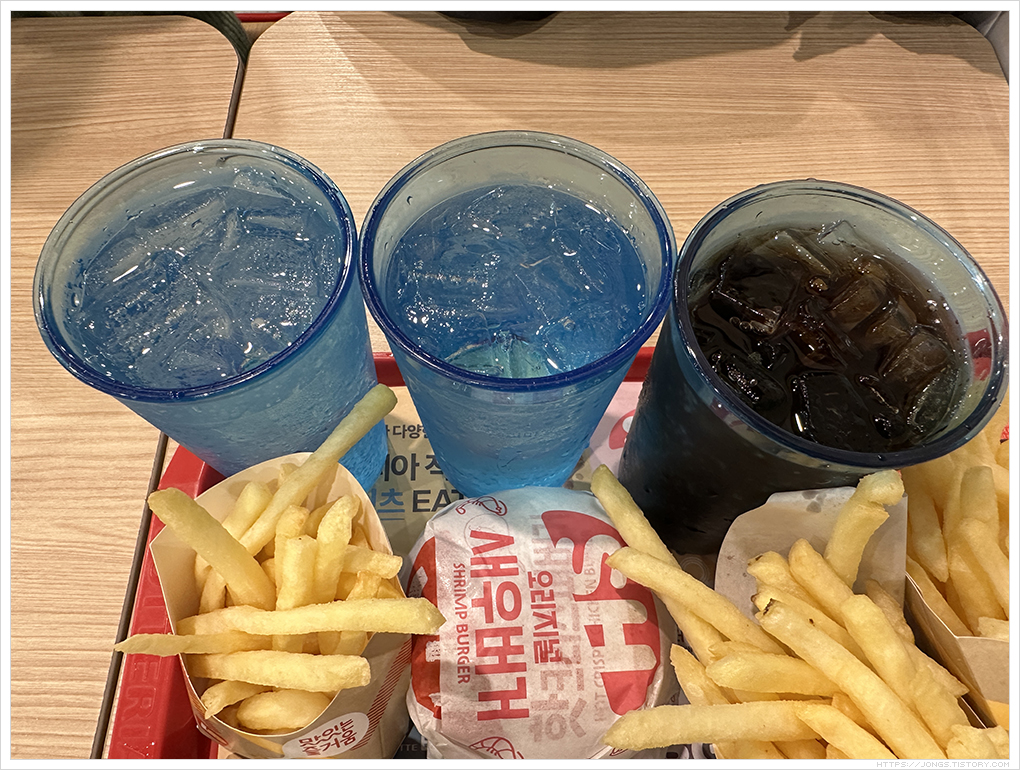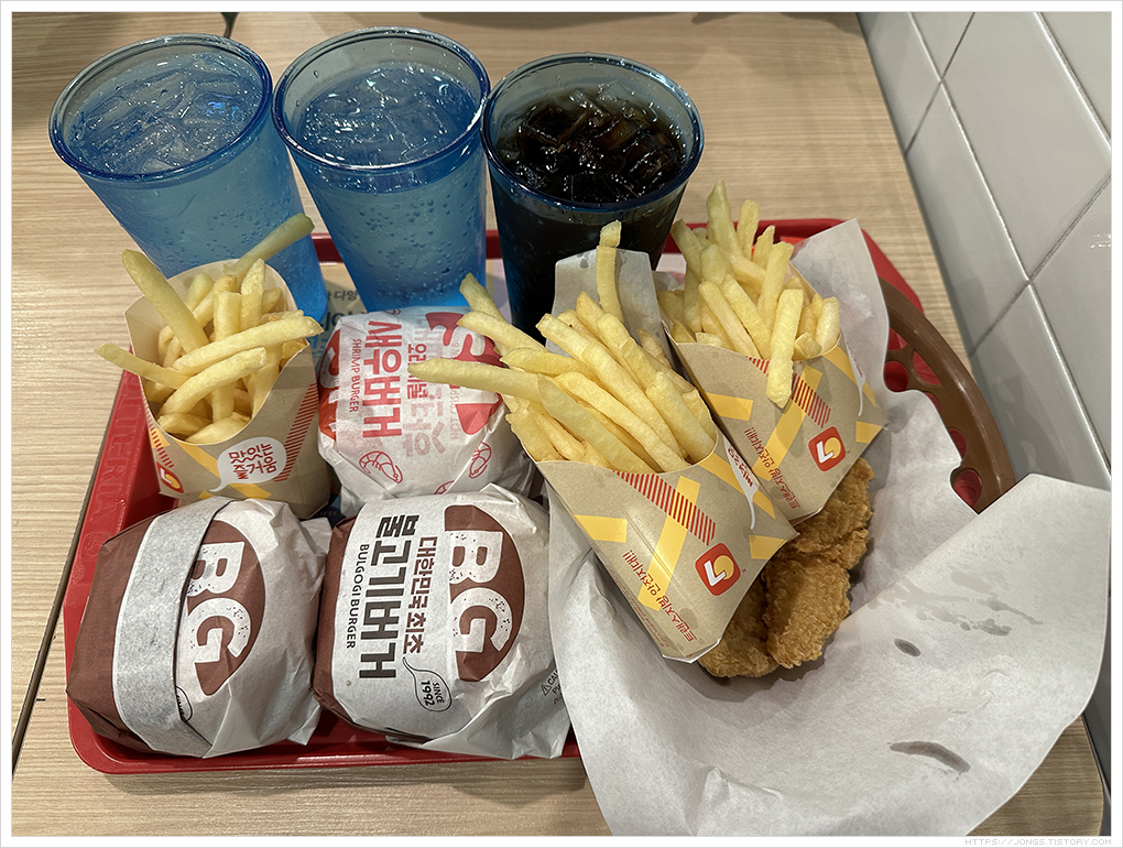 ▼ 운 좋게 자리를 잡을 수 있었습니다. 주문한 메뉴는 새우버거 세트(6,900원), 불고기 버거 세트(6,900원), 돌하르방팩(10,500원)입니다.