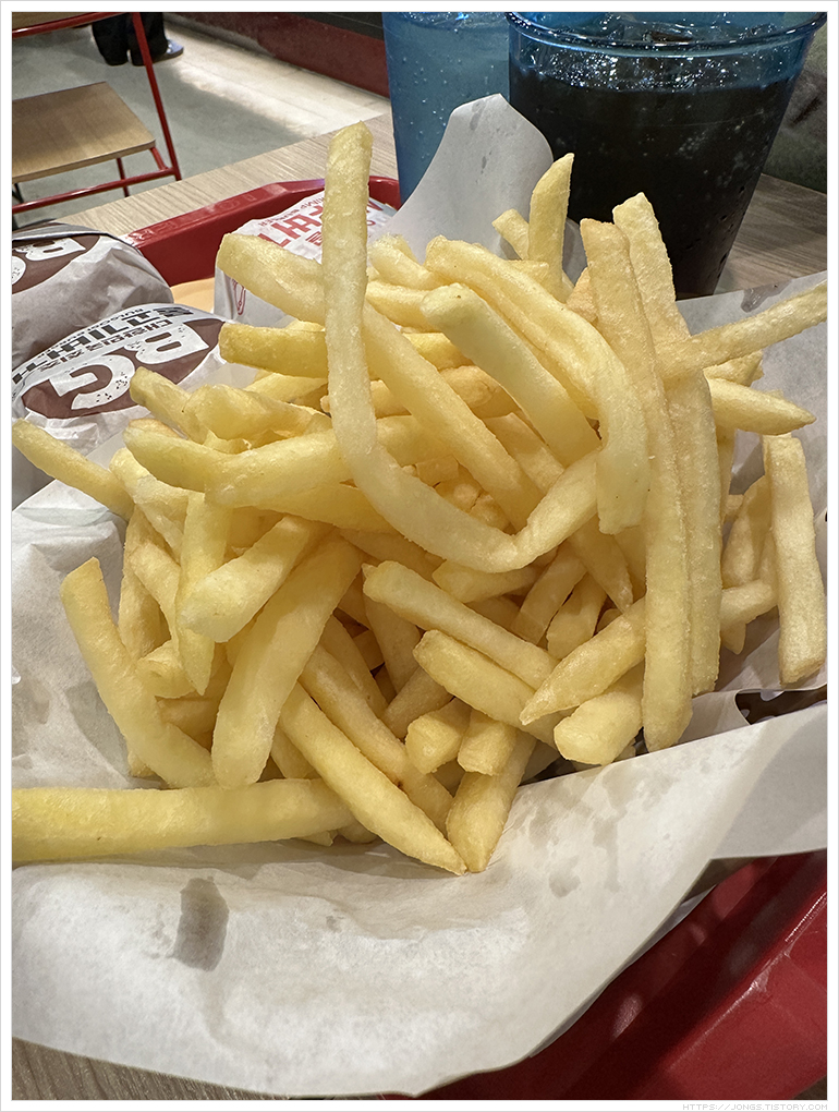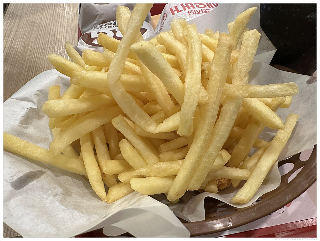 ▼ 회전률이 높아서인지 감자튀김이 깔끔합니다. 기름의 느끼함 없고 색도 깔끔하고 좋습니다. 그리고 튀겨서 바로 나오기 때문에 처음에는 상당히 뜨겁습니다. 감자의 고소함과 담백한 맛이 잘 느껴지고 많이 먹어도 물리지 않습니다.