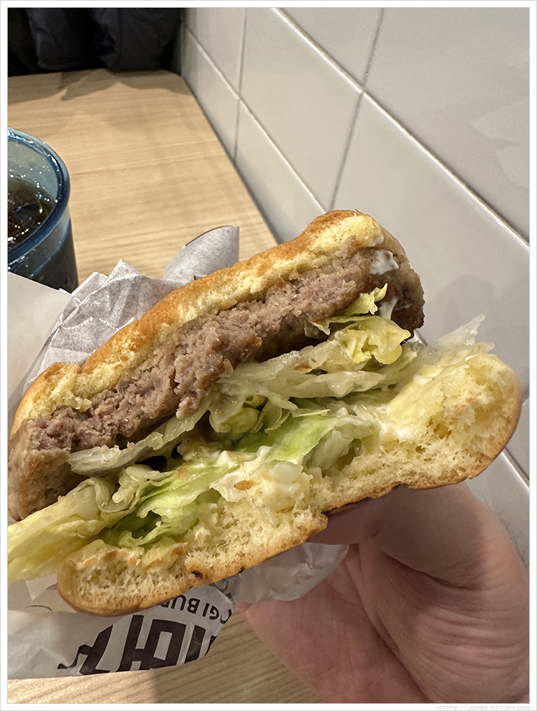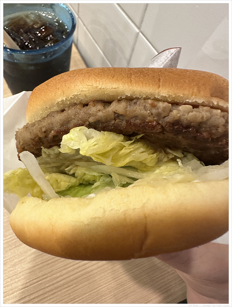 ▼ 햄버거 패티도 따뜻합니다. 햄버거가 따끈따끈해서 맛도 훨씬 좋은 느낌이고 깔끔합니다. 롯데리아 불고기버거 오랜만이네요.