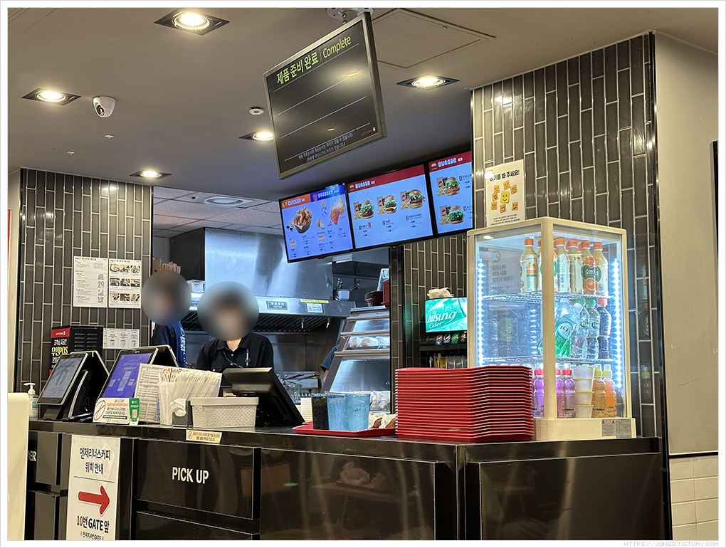 ▼ 공항내에 있어 비행기 탑승 전에 빠르게 먹고 비행기를 타는 사람들이 방문하기 때문에 주문하고 제품이 나오는 시간이 빠른대신 모든 제품을 판매하는 것은 아니였습니다. 시간에 가장 중점을 맞춘 매장이라는 생각이 드는데 그래서인지 시간이 걸리는 메뉴나 모바일 쿠폰이 사용이 안되는 점포라고 합니다.