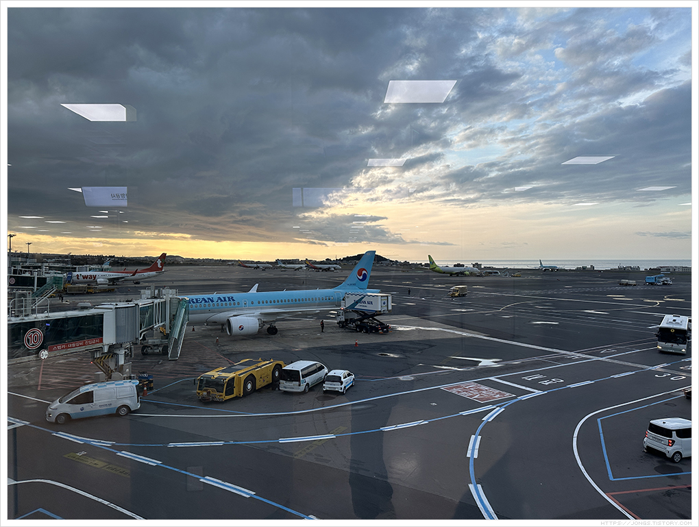 ▼ 제주공항 내에서 비행기 이착륙 풍경을 볼 수 있습니다. 비행기를 좋아하는데 짧게만 머물러 아쉬운 곳이죠.