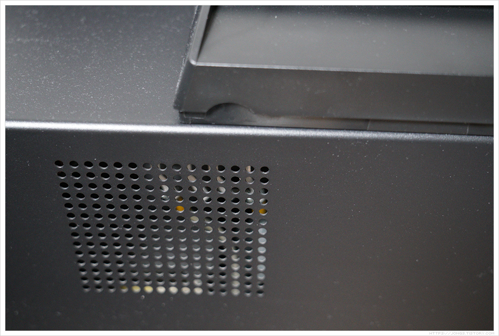 ▼ LCD 화면이 있는 제일 앞쪽을 분리합니다. 아래 사진은 분리된 것을 올려 놓은 사진인데 왼쪽에 홈이 있는데 그 곳을 손가락으로 당기면 앞 부분이 분리가 됩니다. LCD 화면과 연결된 선이 있어 확~ 잡아 당기면 안 됩니다.