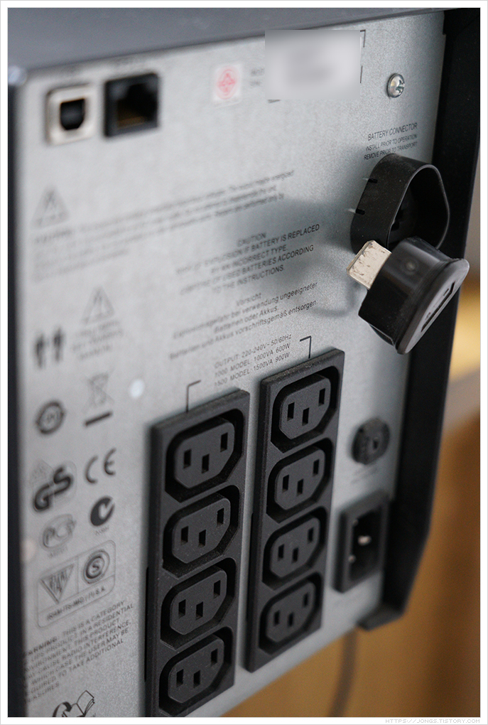 ▼ 배터리 커넥터를 꼭 분래해 줘야 합니다. UPS를 다른 곳으로 옮길 때도 배터리 커넥터를 분리하고 옮기도록 설명서에 나와 있습니다.