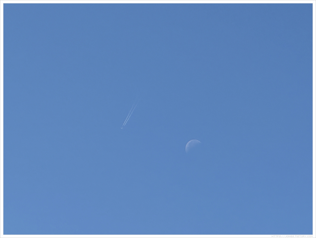 ▼ 달 옆으로 비행기가 지나가는데 비행기 구름이 생깁니다.