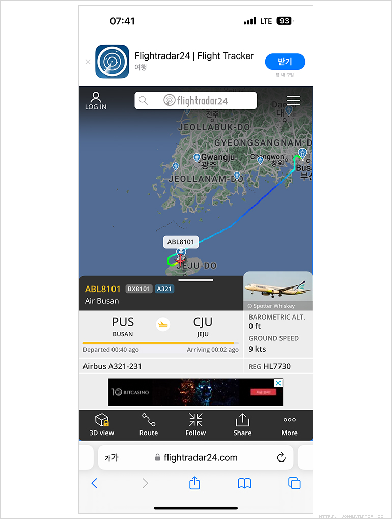 ▼ 어디를 첫 코스로 가 볼까 검색을 하기 위해 제주시 도두항 인근 '오래물광장' 건너편 주차장에 주차를 했습니다. 아시아나 항공기가 착륙중이네요.