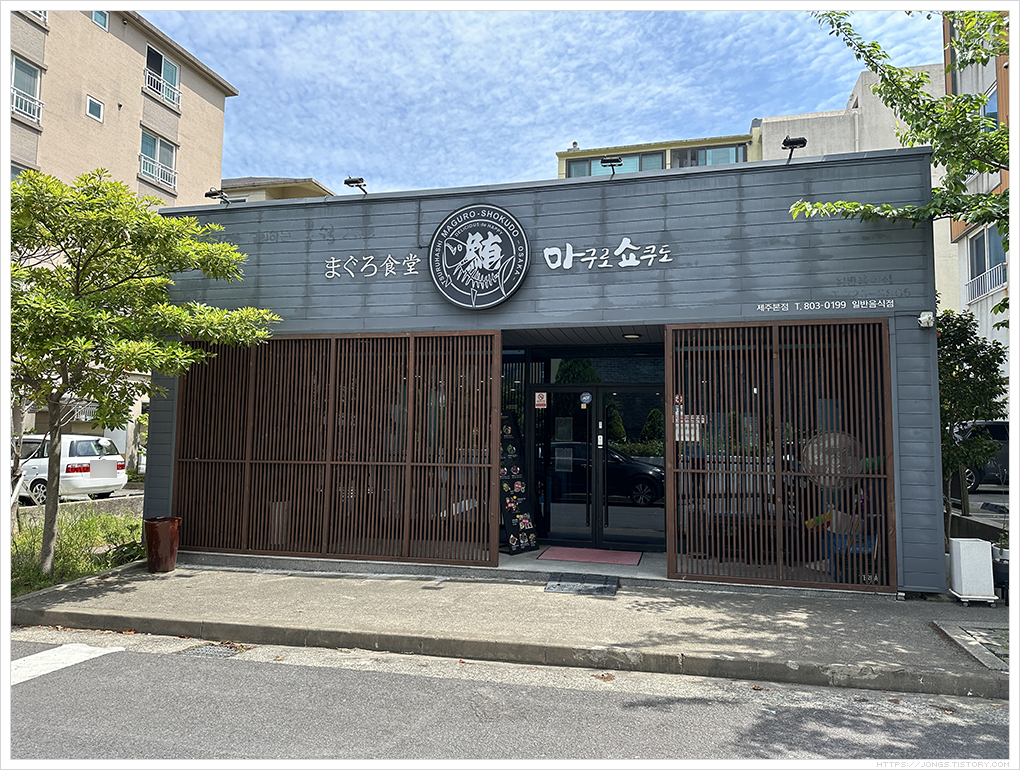 ▼ 첫 코스는 아침겸 점심을 먹기 위해 제주 '마구로 쇼쿠도'에 왔습니다. 참치회덮밥으로 유명한 곳이죠. 인근에 공영주차장이 있는데 방문 했을 때는 무료로 이용 가능했습니다. 주차장도 넓습니다.