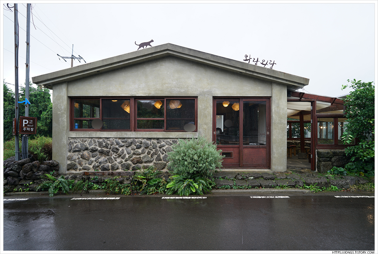▼ 카페 와랑와랑인데 정말 예쁜 건물이 아담하게 있습니다. 지붕 위에 고양이와 와랑와랑 카페 이름이 있는 것도 와랑와랑 카페의 차별성이 되는 것 같습니다. 사진 촬영 포토존입니다. 사진이 정말 예쁘게 나와요. 와랑와랑 카페 앞에 있는 도로는 올레길5코스가 지나갑니다.