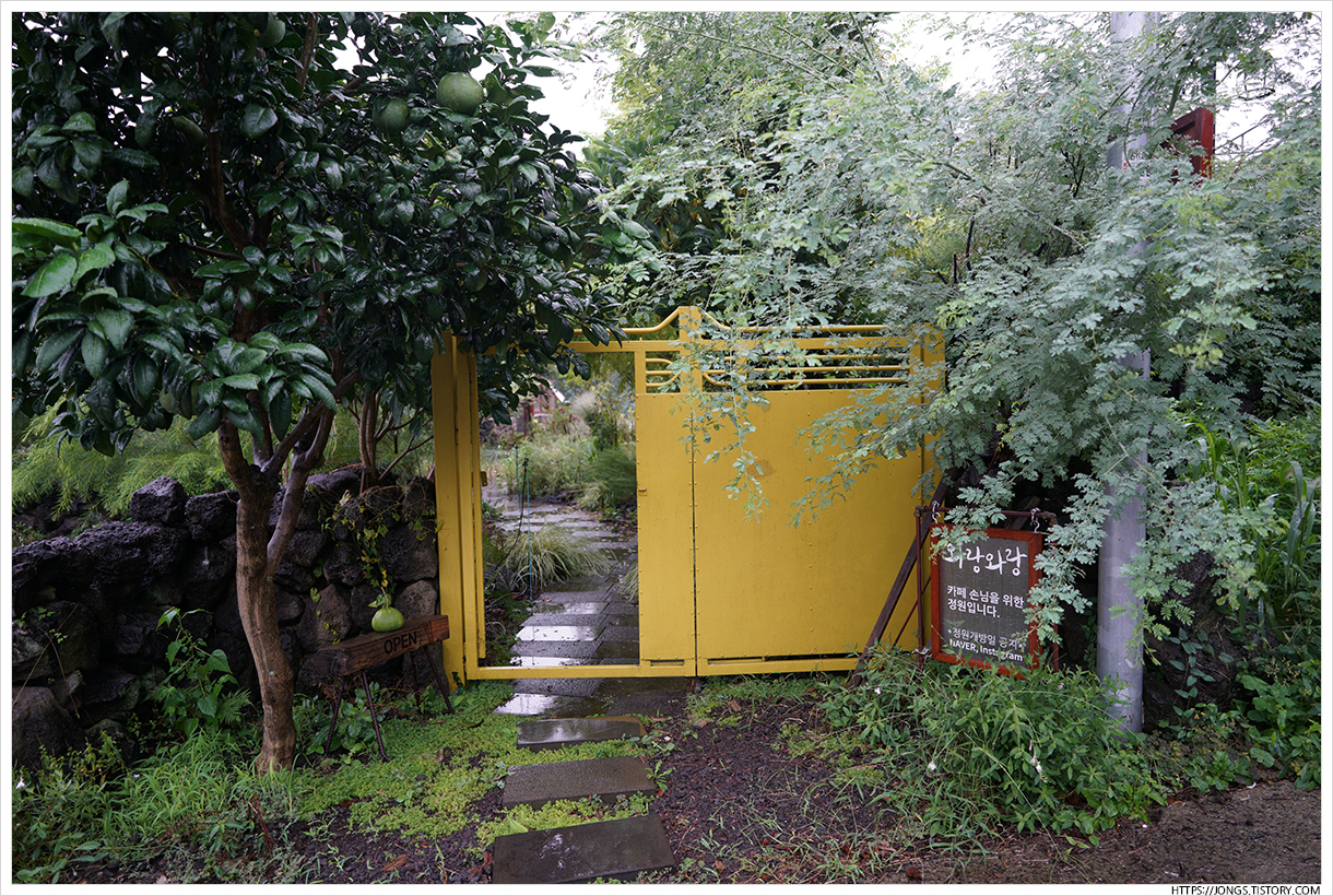 ▼ 와랑와랑 카페 정원으로 들어가는 입구입니다. 카페 손님은 들어가 볼 수 있는 것 같습니다. 이날을 비가 와서 카페 정원에는 가 보지 않았습니다. 정원개방일 공지(네이버, 인스타그램)가 있는 것으로 봐서는 개방을 하지 않는 날도 있는 것 같습니다.