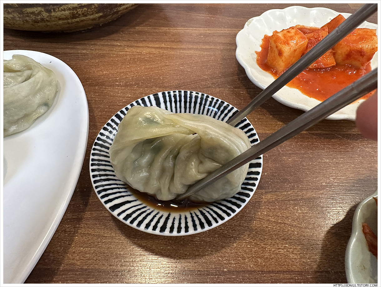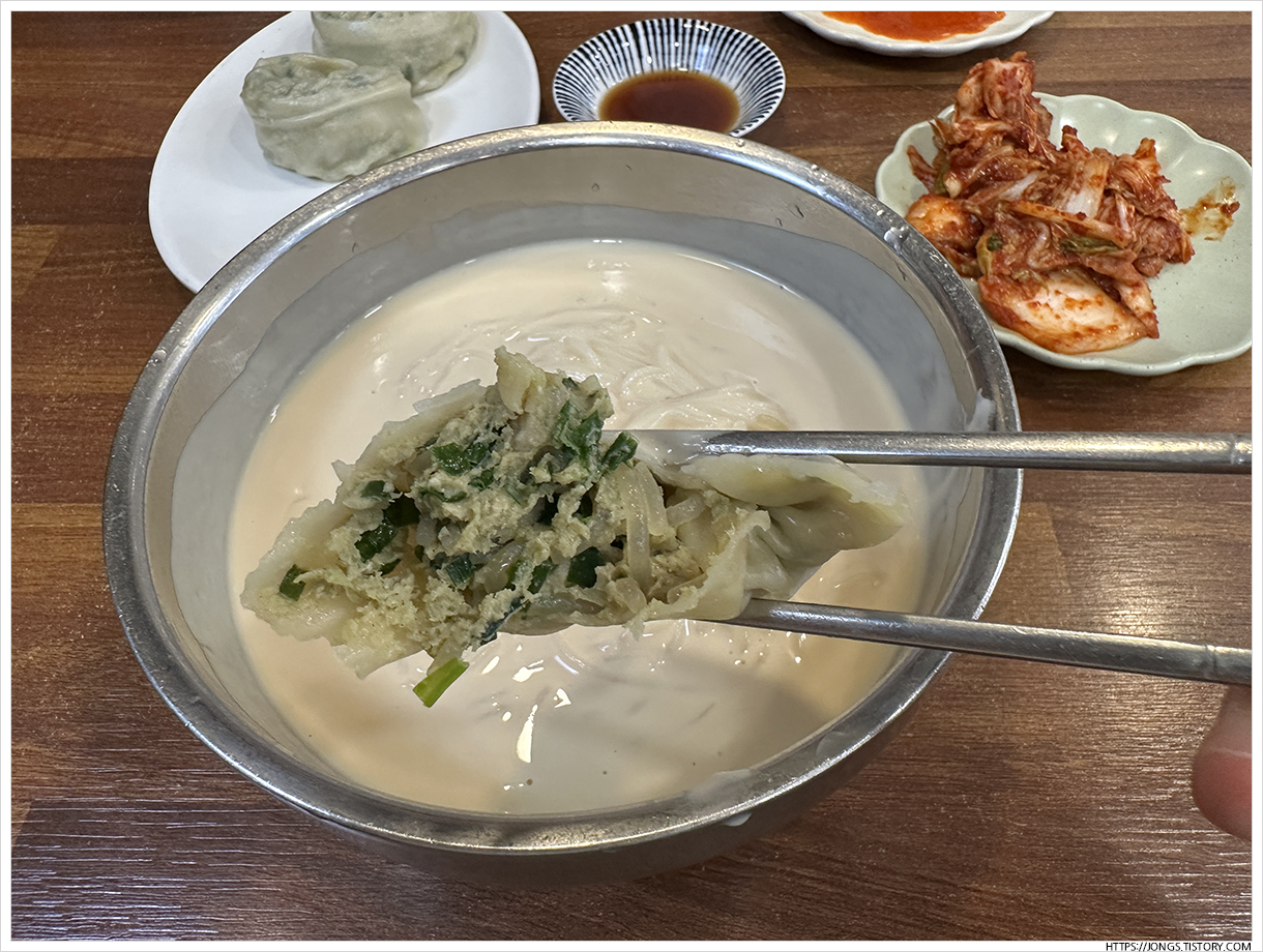 ▼ 여기 고기만두 담백하면서 부추가 들어 있어 좋았는데 콩국수나 수제비와 잘 어울렸습니다. 간이 강하면 콩국수와 함께 먹기 어려울 수 있는데 간이 강하지 않으면서 딱 맞았습니다.