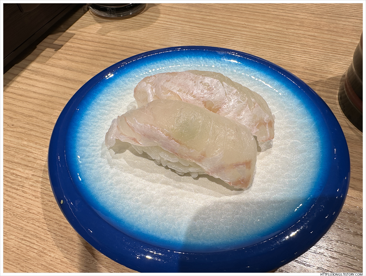 ▼ 참돔초밥입니다. 다른 맛 있는 조합의 초밥이 많아 고급 어종인 참돔초밥이 묻히는 느낌입니다.