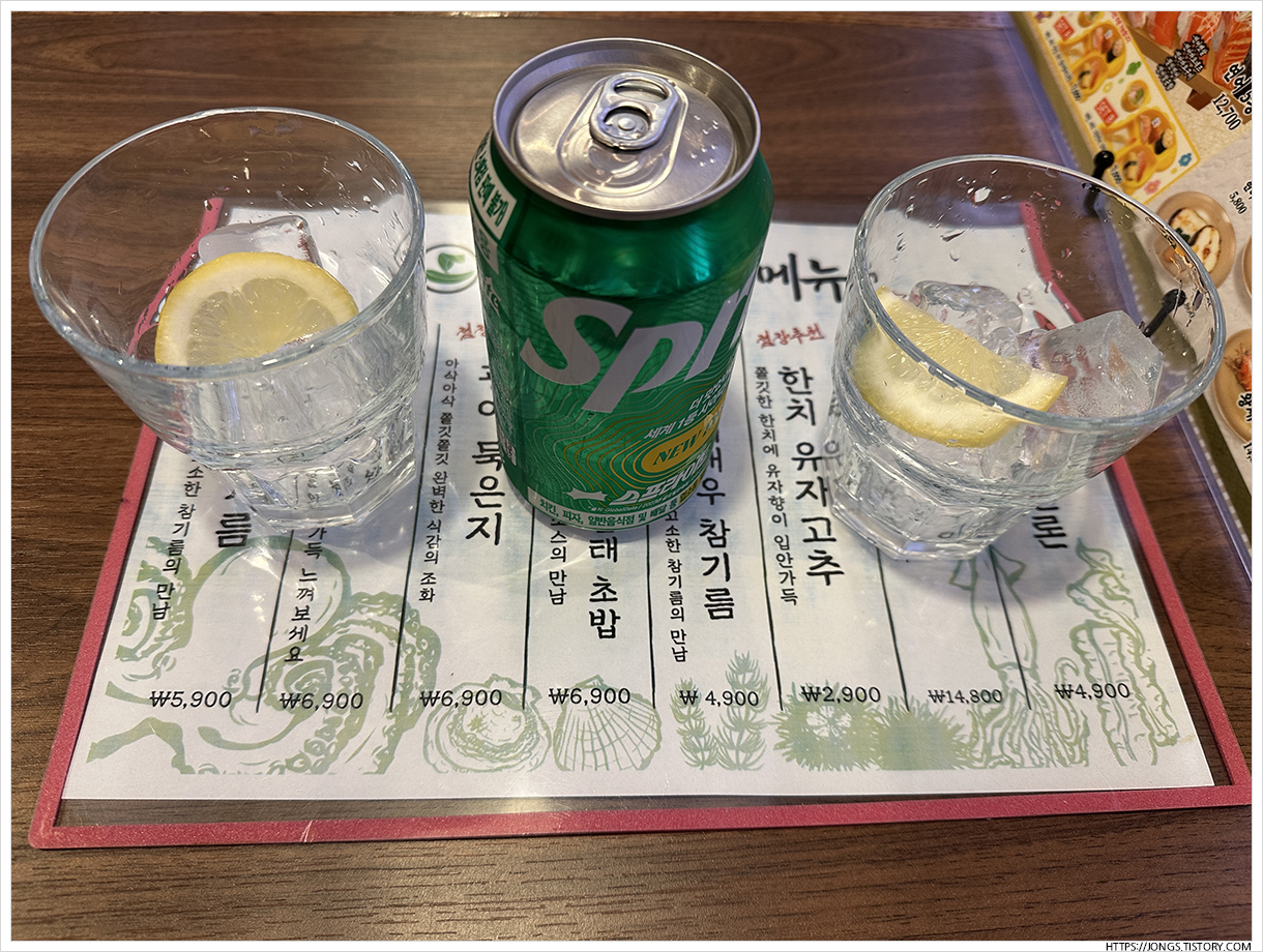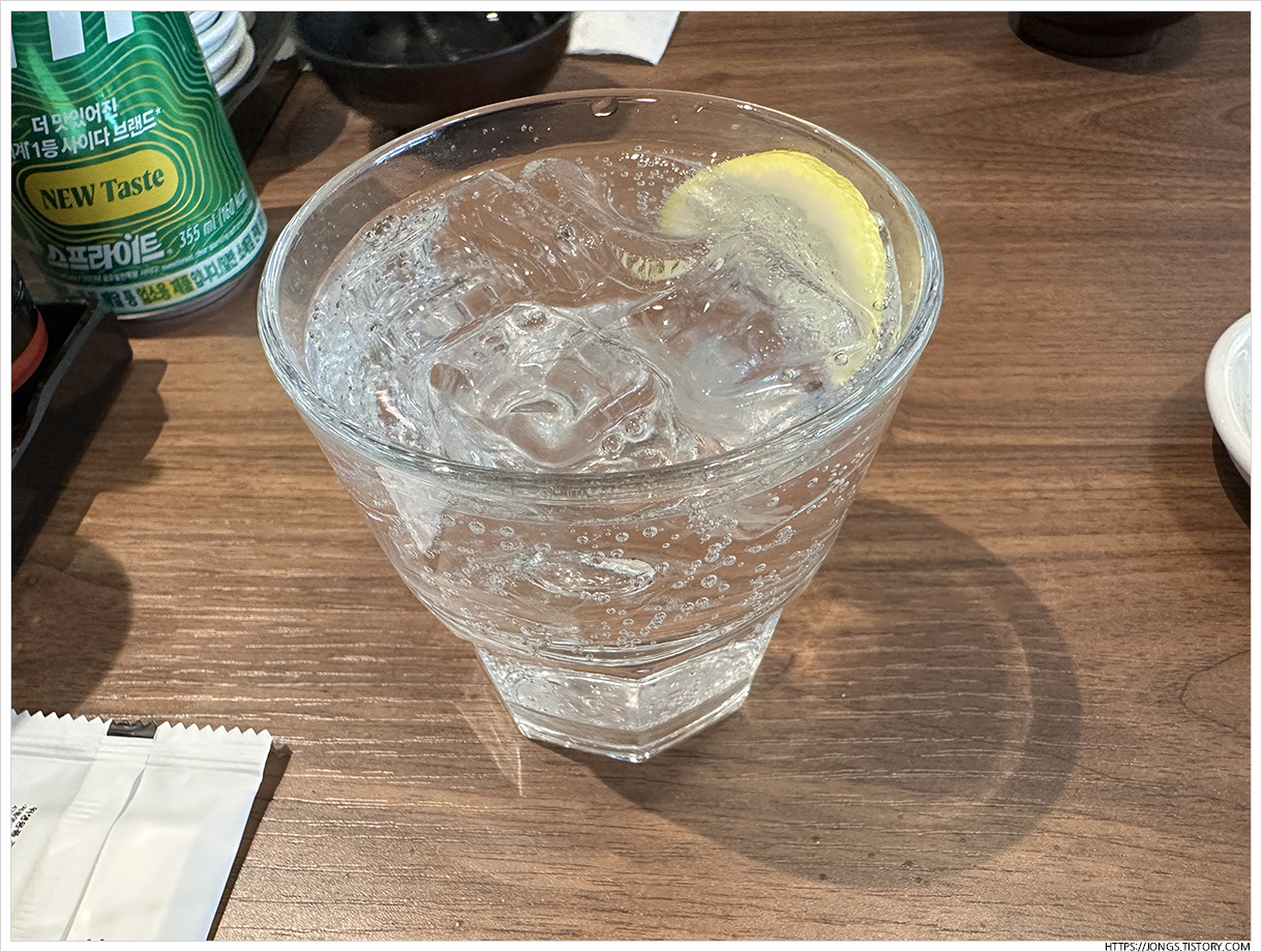 ▼ 스프라이트 355mL(3,000원)도 1개 주문했습니다. 얼음컵에 레몬을 함께 넣어 주는 것도 좋네요.