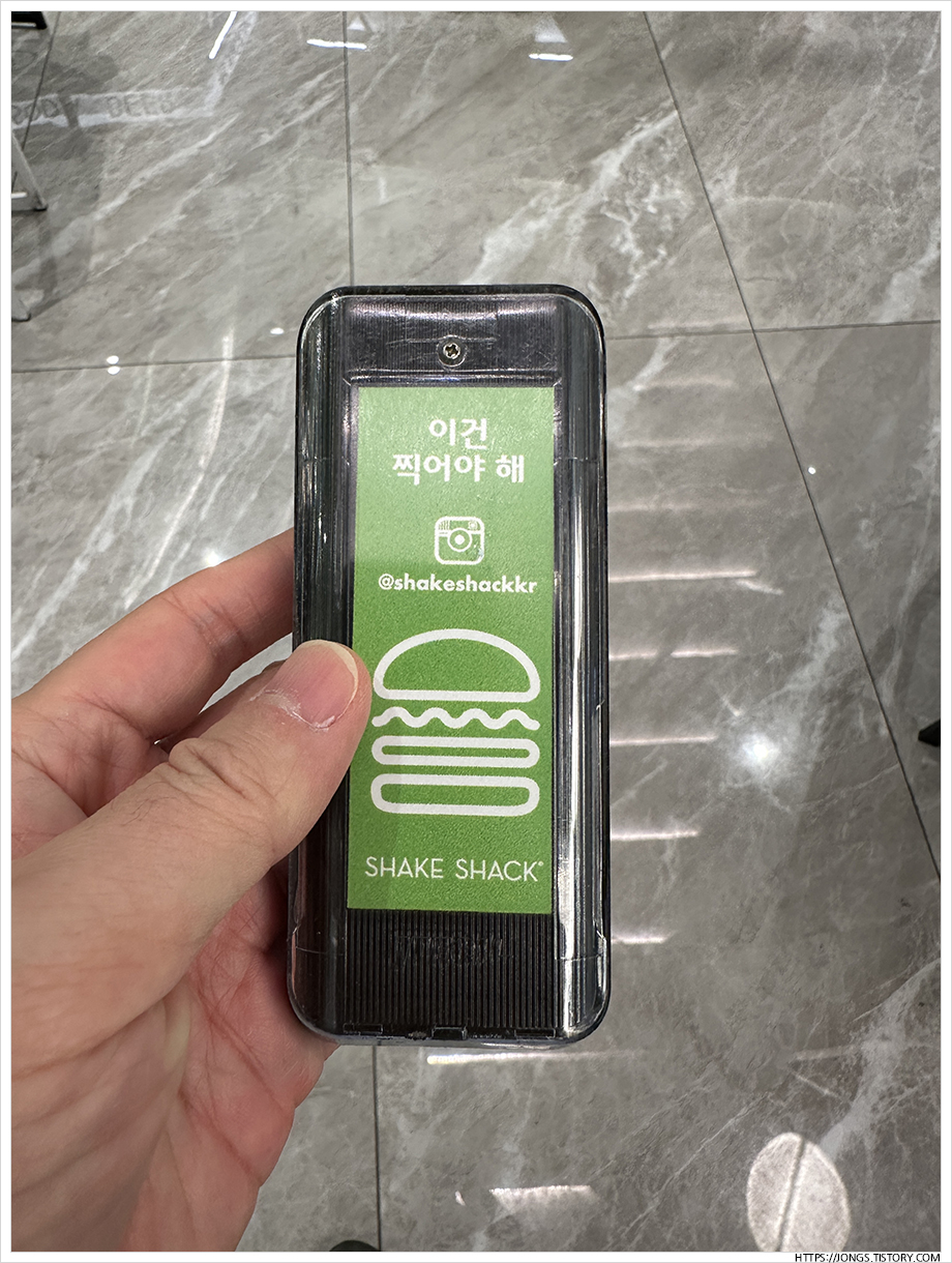 신세계 센텀몰 1층 쉐이크쉑 버거 1+1 행사를 한다고 해서 포장을 해서 왔습니다. 매장은 사람들로 가득차 있었고 주문도 줄을 서서 했습니다. 쉐이크쉑 버거만 주문시 1개를 더 주는 행사였고 짧은 기간만 진행을 했습니다.