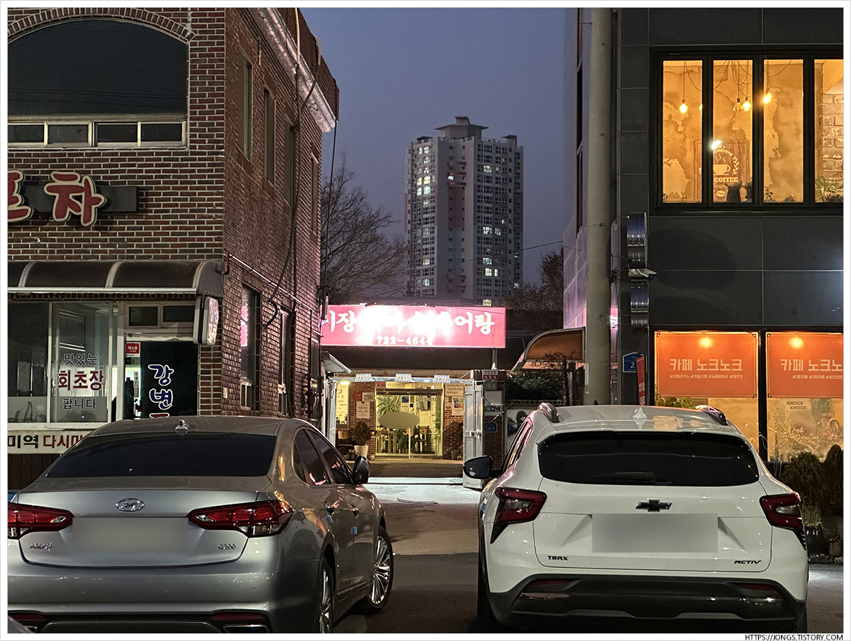 ▼ 기장 가마솥 추어탕 건물이 다른 건물보다 안쪽으로 들어가 있어서 사람의 눈에 띄지는 않습니다. 그래서 잘 몰랐던 것 같은데 나름 아는 사람은 알고 있는 유명한 맛집이였어요. 주차는 강변포차나 카페 노크노크 건물 앞쪽으로 많이 합니다.